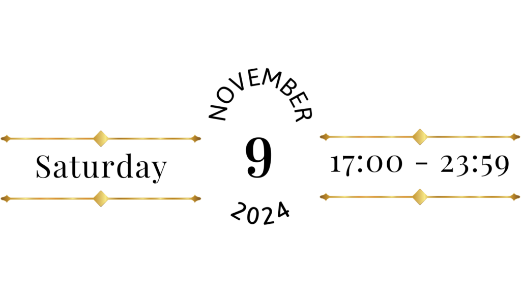 SATURDAY, 9TH NOVEMBER 2024 FROM 17:00 to 23:59